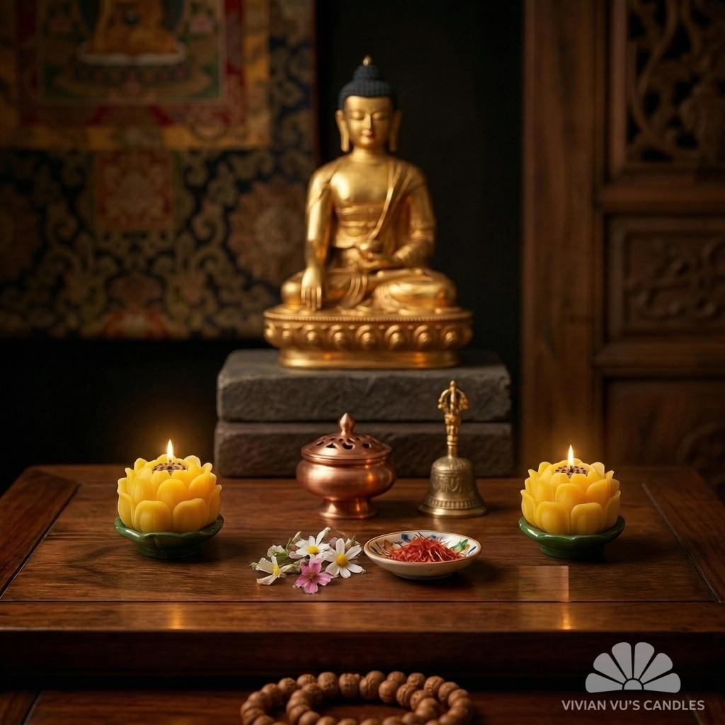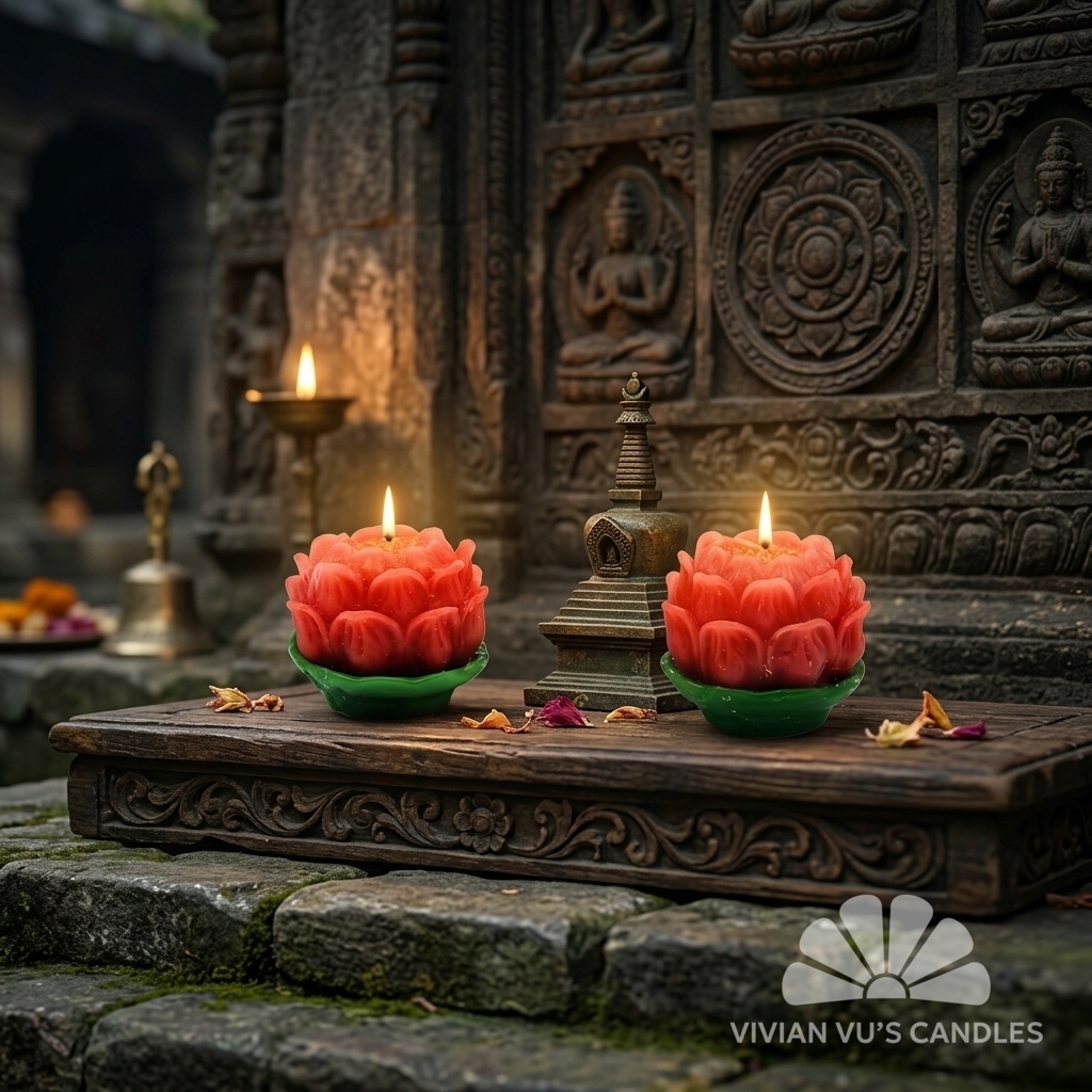Sự tinh tế trong không gian thờ cúng phản ánh trực tiếp tấm lòng và sự viên mãn của gia chủ. Dâng một cặp nến hoa sen là dâng lên sự tĩnh tại, lòng biết ơn và những mong cầu tốt đẹp nhất.
