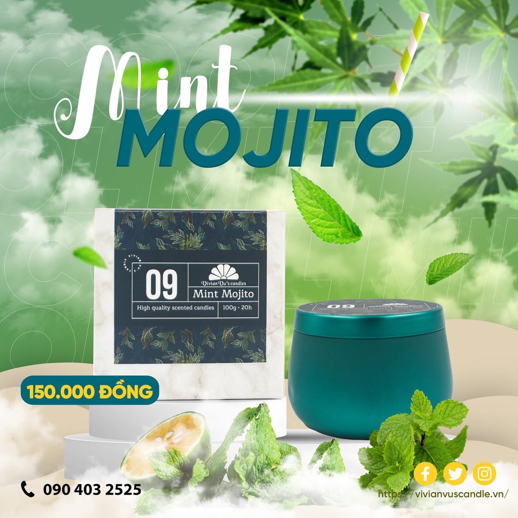 4. Nến thơm Mojito Bạc Hà 09: Mùi hương bạc hà lành lạnh của mùa đông.