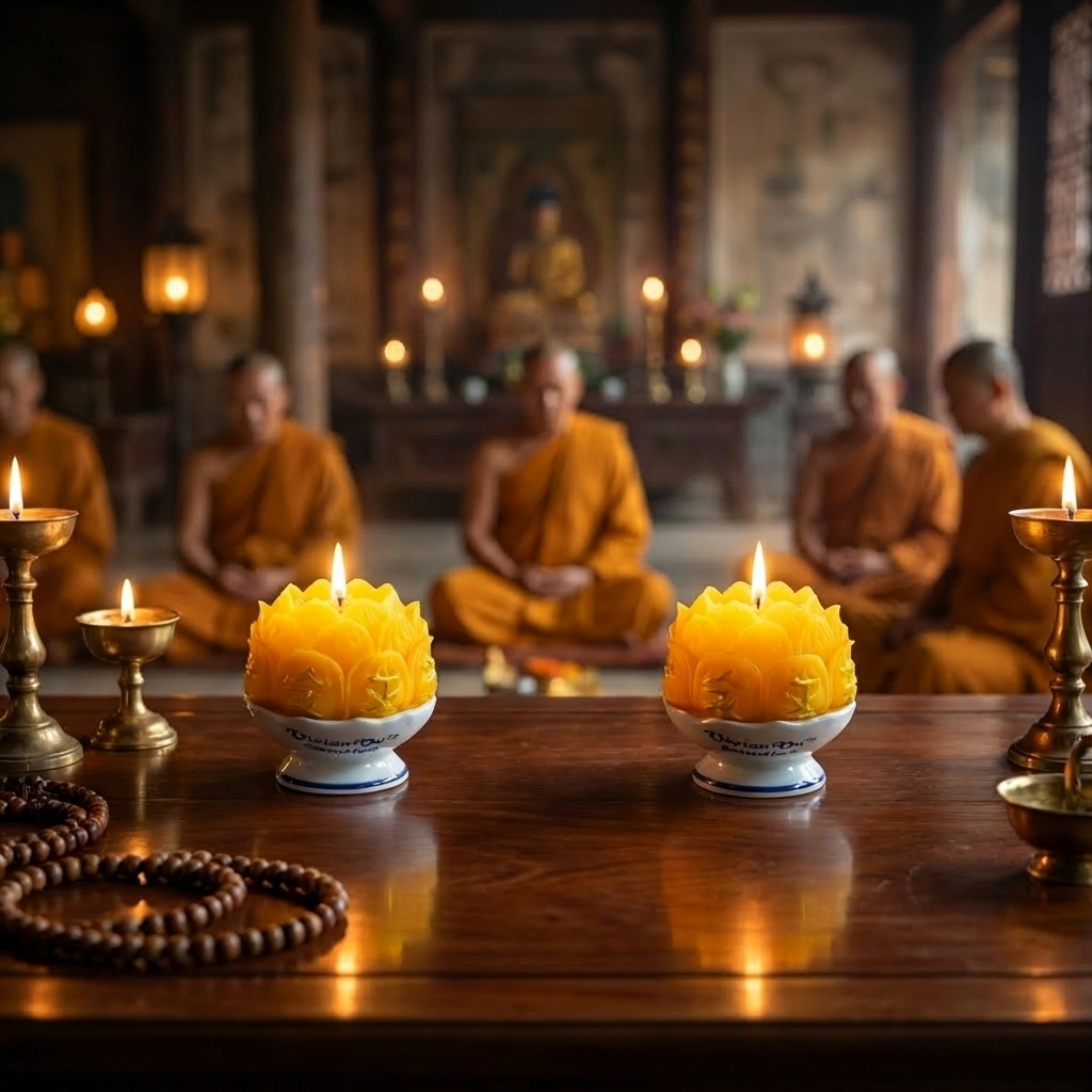 Màu vàng đại diện cho ánh sáng của trí tuệ, sự giải thoát và tính tịnh tài. Nến hoa sen vàng đặc biệt phù hợp để dâng cúng dường chư Phật tại các ngôi chùa, sử dụng trong các khóa tu, lễ Vu Lan, hoặc đặt tại ban thờ Phật tại gia. Ánh sáng vàng tạo nên một tầng không gian tĩnh lặng, hỗ trợ đắc lực cho sự thiền định và khai mở tâm trí.