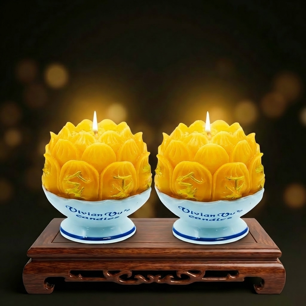 Hoa sen từ lâu đã là biểu tượng của sự thuần khiết và trí tuệ trong văn hóa Á Đông. Lấy cảm hứng từ hình tượng cao quý này, mỗi sản phẩm nến hoa sen đều được đúc tạo với cấu trúc cánh hoa xếp lớp tỉ mỉ. Sự hiện diện của cặp nến trên ban thờ tạo nên một điểm nhấn tĩnh tại, hài hòa với các pháp khí và vật phẩm phong thủy khác, giúp không gian gia tiên hay chốn thiền môn thêm phần uy nghi.